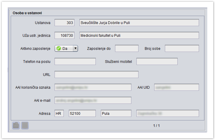 Ustanova, Uža ustr. jedinica - Podaci o ustanovi u kojoj je osoba zaposlena.